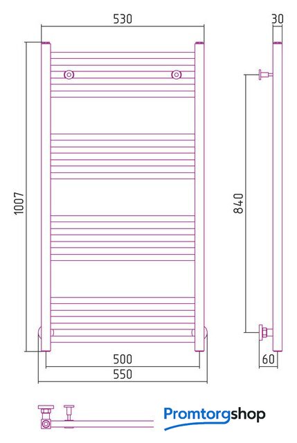 водяной, "лесенка", нержавеющая сталь, подключение нижнее, 100.7x55 см, цвет: полированная сталь