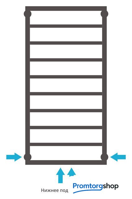 водяной, "лесенка", нержавеющая сталь, подключение нижнее, 103x55 см, цвет: полированная сталь