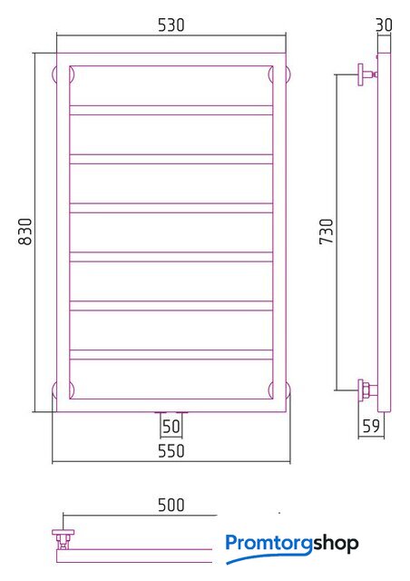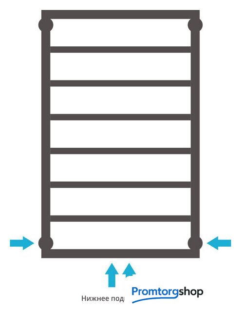 водяной, "лесенка", нержавеющая сталь, подключение нижнее, 83x55 см, цвет: полированная сталь