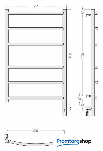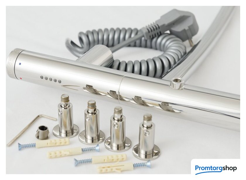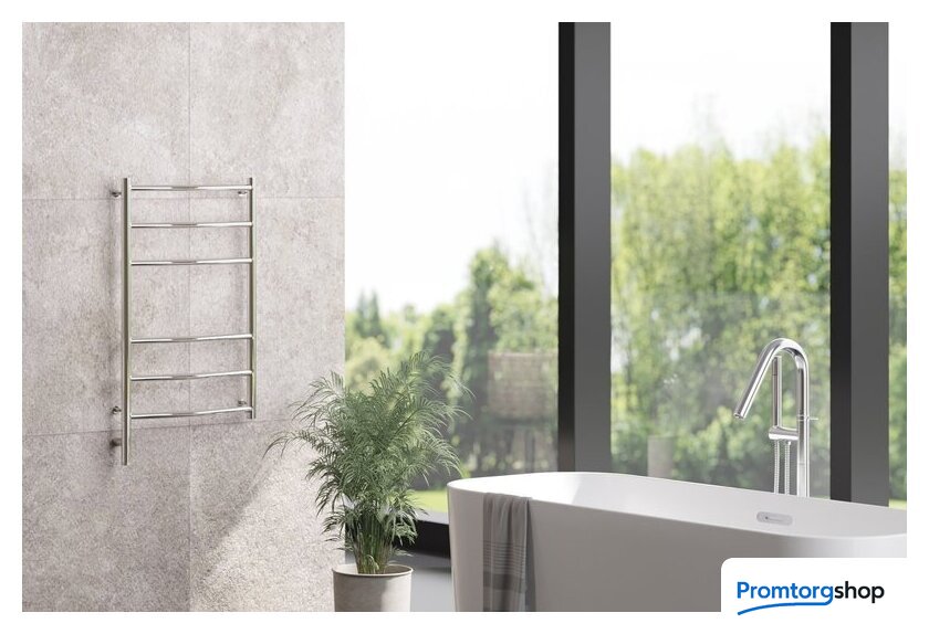 электрический, "лесенка", нержавеющая сталь, подключение боковое, таймер, терморегулятор, 92.4x53.2 см, цвет: хром