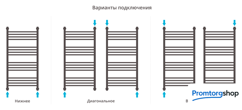 | Посадочное (межосевое) расстояние | 500 мм (нижнее подключение, 1000 мм - диагональное и вертикальное подключение) |