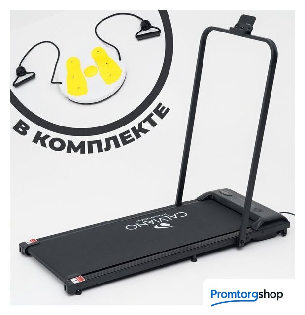 | Особенности | - транспортировочные ролики- подставка под телефон- ручка (фиксируется, чтобы опустить поручень нужно открутить болты с каждой стороны)- дисплей над беговым полотном- пульт дистанционного управления- в комплекте Твист (диск здоровья с эспандерами) |