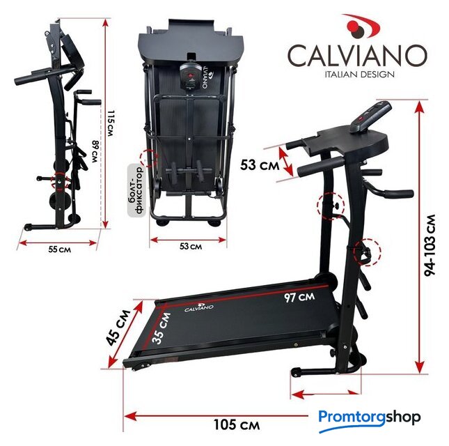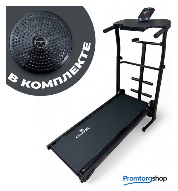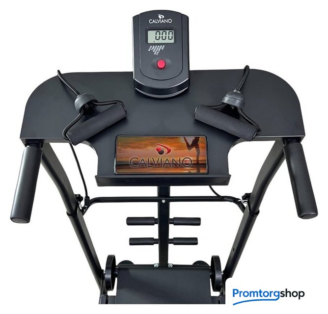 Особенности | Прочная и надежная конструкция;Эспандеры для рук;Диск здоровья;Широкая подставка для планшета или смартфона;На встроенном ЖК дисплее вы сможете осуществлять контроль за показаниями тренировок: время, скорость, израсходованные калории, пройденная дистанция;Регулировка угла наклона полотна: 2 положения;Регулировка поручней по высоте: 5 положений;Беговая дорожка оснащена двумя транспортировочными роликами для удобства перемещения;Складная конструкция беговой дорожки Calviano BeFIT обеспечит удобное хранение даже в небольшом помещении. |