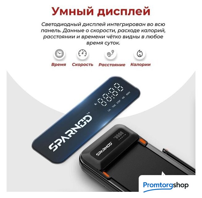 | Отображаемая информация | время тренировки, пройденная дистанция, текущая скорость, расход калорий |