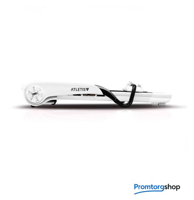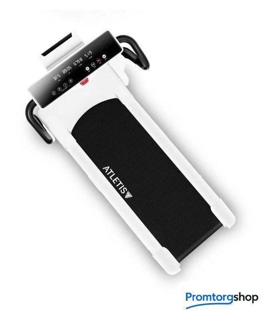 Особенности | Стильное решение для поддержания формы и физической активности. Беговая дорожка подойдет пользователям невысокого и среднего роста.Благодаря мощному двигателю беговое полотно движется равномерно при любой скорости и с любой нагрузкой.Одно из важных преимуществ модели ATLASSPORT Atletis— простая ультракомпактная система складывания. В сложенном виде высота тренажера всего 27 см. Система складывания дорожки очень простая — нужно просто закрепить стойку с консолью на беговом полотне.Для безопасных тренировок на полотно нанесен антискользящий рисунок.В беговой дорожке реализована настраиваемая система амортизации. Она состоит из 4 цилиндрических эластомеров, 6 пружинных блоков и мобильного амортизатора в центральной части. Подвижный амортизатор можно передвигать ближе к началу или середине бегового полотна, чтобы регулировать жесткость всей системы.На консоли с LED-дисплеем отображаются все основные характеристики тренировки. Для удобства есть быстрые кнопки изменения скорости. Также на панели управления предусмотрена полочка для планшета и USB-разъем для подзарядки гаджета.Поскольку дорожка рассчитана на тренировки небольшой интенсивности, в ней нет датчиков пульса. Из-за специфики конструкции также не предусмотрена функция изменения угла наклона. |