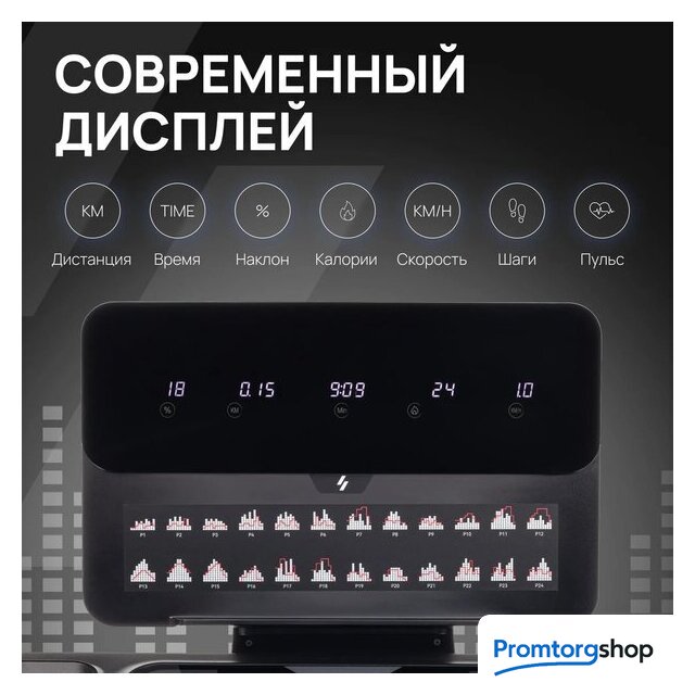 | Отображаемая информация | время тренировки, пройденная дистанция, текущая скорость, расход калорий, пульс |