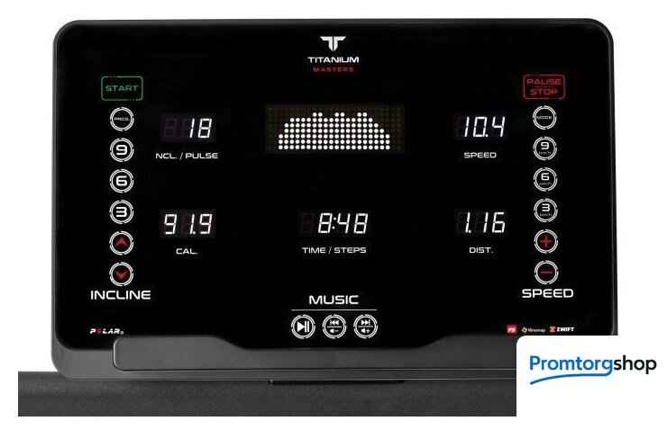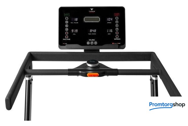| Показания на дисплее | прошедшее время, пройденное расстояние, текущая скорость, угол наклона, пульс, жироанализатор (Body Fat), количество шагов, программный профиль, сожжено калорий |
