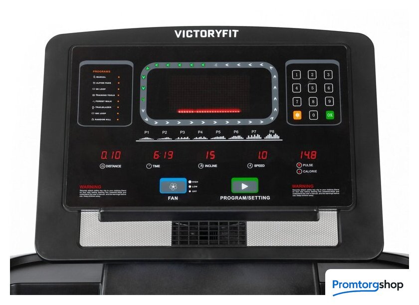 | Показания на дисплее | Угол наклона, дистанция, время тренировки, скорость бега, значение пульса или калорий (программа Bodyfat) |