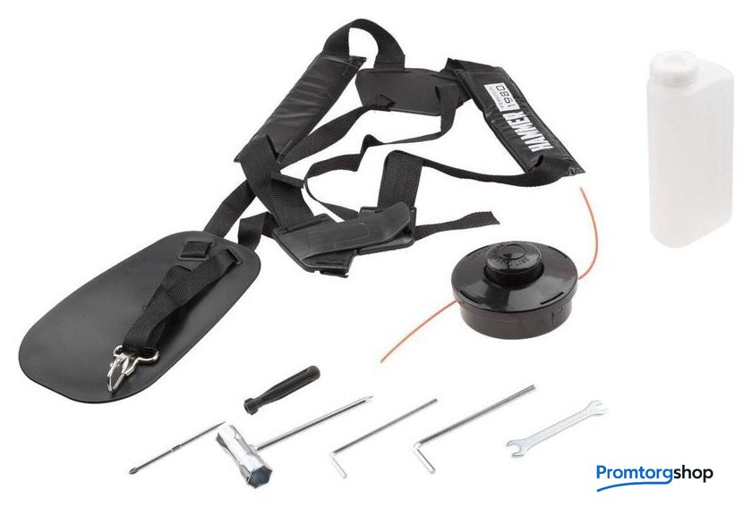 Аксессуары | - Инструкция- Катушка с леской- Нож для травы- Ремень подвесной- Мерная канистра для смешивания топливной смеси- Ключи для монтажа и обслуживания |