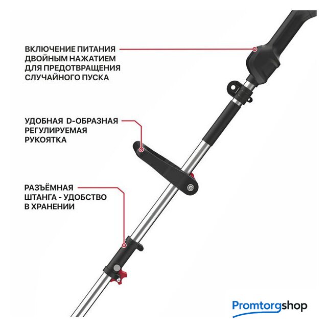 Аксессуары | Триммер аккумуляторный, режущий диск, триммерная головка, ремень наплечный, ключ шестигранный (2 шт), ключ торцевой, руководство по эксплуатации, коробка. |