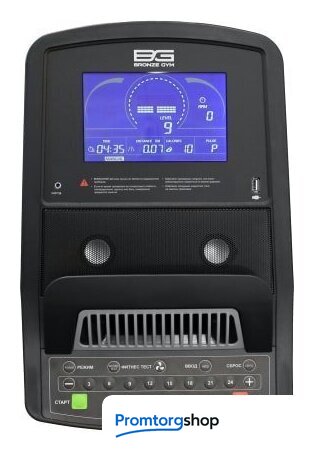 | Показания на дисплее | время, скорость, дистанция, уровень нагрузки, расход калорий, пульс, темп, ватт, фитнес тест, температура в помещении |
