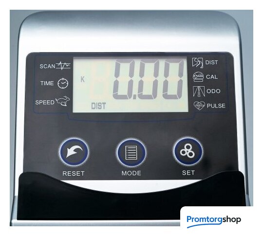 | Отображаемая информация | время тренировки, пройденная дистанция, текущая скорость, расход калорий, пульс, величина нагрузки, оставшееся время, оставшееся расстояние |