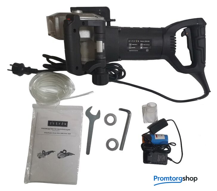 Комплект поставки | Штроборез - 1 шт.Водяной насос - 1 шт.Шланг для подачи воды 5 м (6 мм) - 1 шт.Шестигранный торцевой ключ 8 мм - 1 шт.Рабочие диски (установлены) - 5 шт.Адаптер для подключения пылесоса - 1 шт.Гаечный ключ - 1 шт.Плоские шайбы - 2 шт.Руководство по эксплуатации - 1 шт.Кейс - 1 шт. |