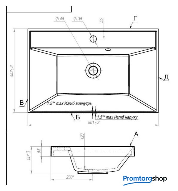 накладной, искусственный мрамор, крепление на мебельный шкаф/на столешницу