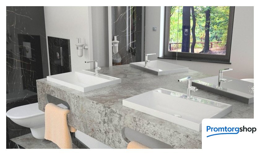 накладной, искусственный мрамор, крепление на мебельный шкаф/на столешницу