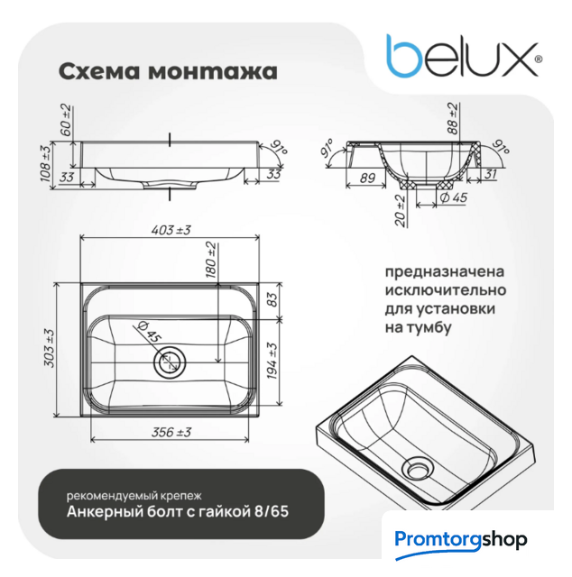 | Крепление | на тумбу |