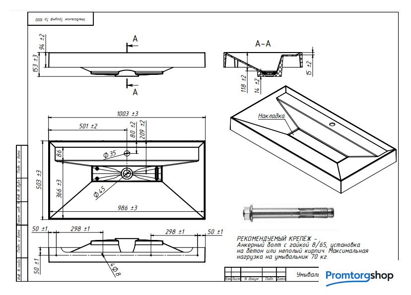 | Отверстие под смеситель | 1 шт. по центру чаши |