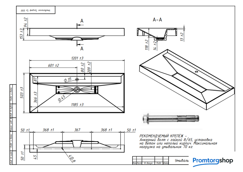 | Отверстие под смеситель | 1 шт. по центру чаши |