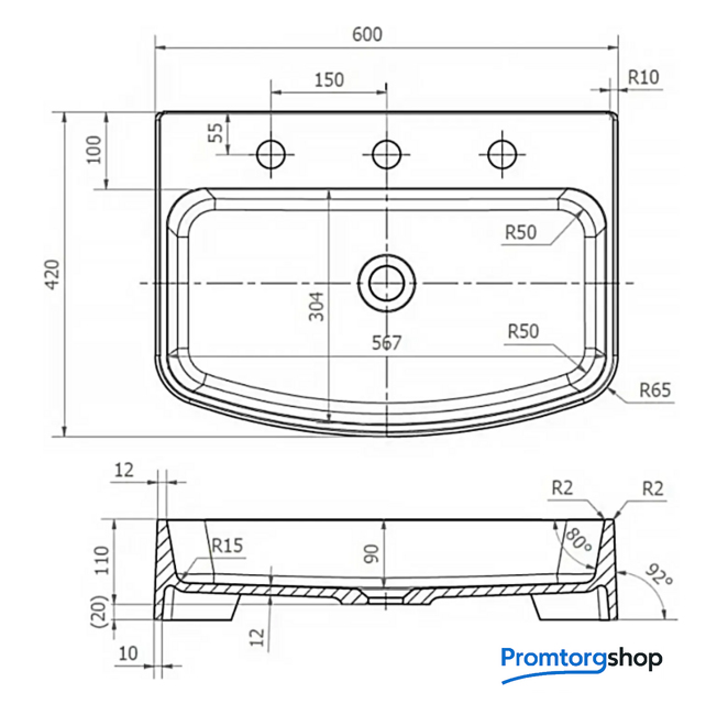 | Ширина | 60 см. Ширина/диаметр чаши 56.7 см |