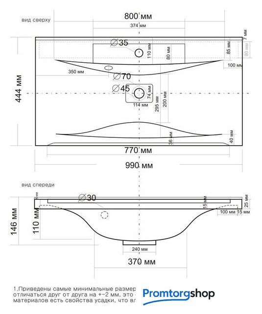 накладной, искусственный камень, крепление на столешницу/на мебельный шкаф