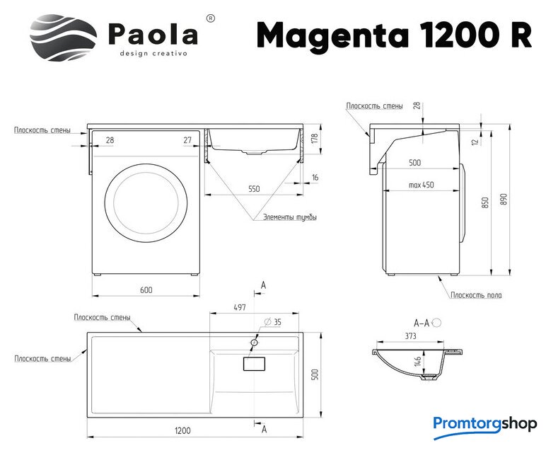 Умывальники Paola Paola Magenta 1200R Код товара: 6380539