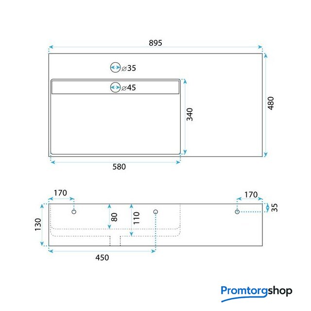 | Отверстие под смеситель | 1 шт. |