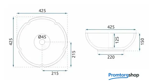 | Слив | Диаметр сливного отверстия: 45 мм |