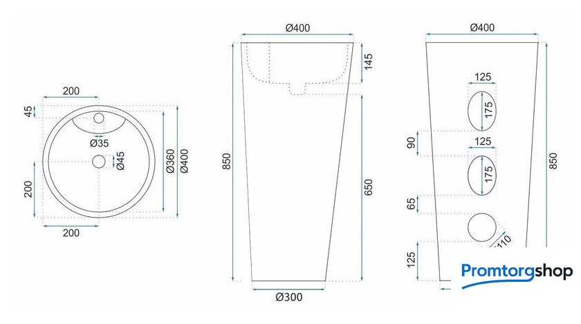 | Слив | Диаметр сливного отверстия: 45 мм |