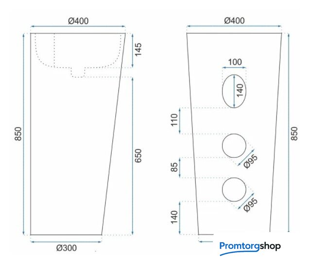 | Слив | Диаметр сливного отверстия: 45 мм |