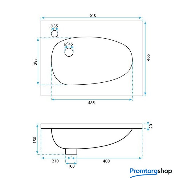 | Слив | Диаметр сливного отверстия: 45 мм |