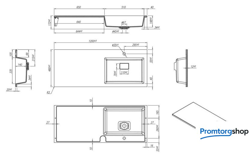настенный/накладной, искусственный камень, крепление на стену/над стиральной машиной