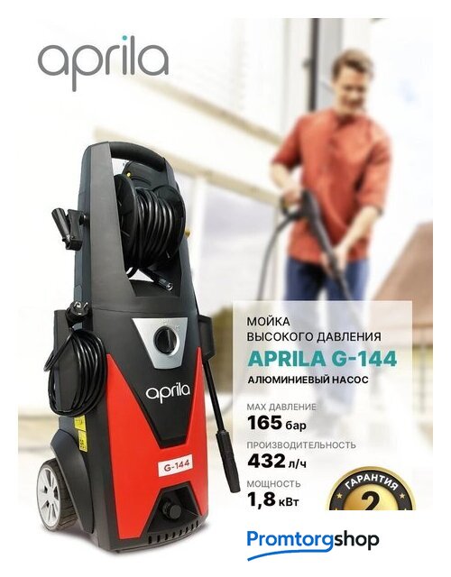 | Комплектация | - Мойка высокого давления Aprila G-144- Моечный пистолет с резьбовым соединением аксессуаров- Струйное копье с регулятором струи - Грязевая фреза- Комплект для чистки сопел струйной трубке- Фильтр тонкой очистки- Барабан для намотки шланга- Держатель для электрокабеля- Инструкция на русском языке |
