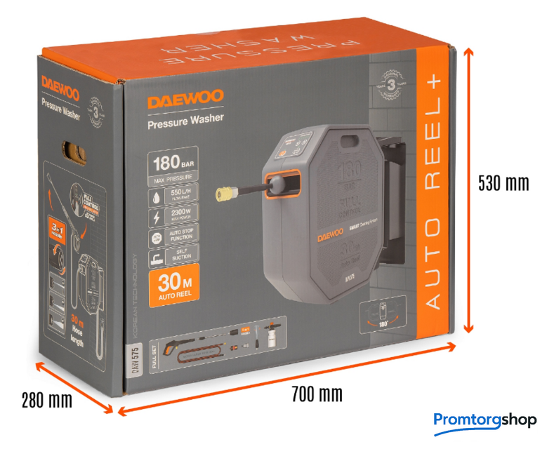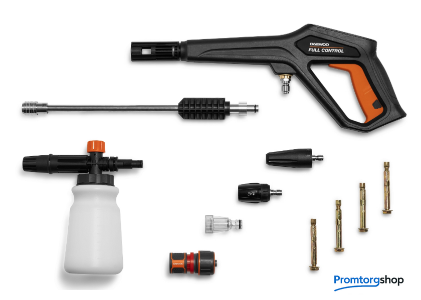 | Тип | электрическая. 30-метровый шланг на катушке с электроприводом. Армированный шланг длиной 30м устойчив к заломам и позволяет комфортно работать на большой территории. Встроенный электропривод катушки смотает шланг одним нажатием кнопки на корпусе мойки или удаленно на пистолете. Также можно легко установить необходимую для работы длину шланга. 5 уровней мощности. Мойка оснащена электронной панелью управления, а регулятор мощности позволяет установить один из пяти уровней давления, наиболее подходящий для вашей задачи. Пистолет DAEWOO FULL CONTROL. На рукоятке пистолета размещен пульт дистанционного управления с полным функционалом: - включение/выключение - переключение между 5 уровнями мощности - смотка шланга Пульт работает от аккумулятора и имеет разъем USB Type-C для зарядки. Система QUICK CONNECT. Байонетная система Quick Connect позволяет быстро заменить струйную трубку на пеногенератор без использования резьбовых соединений. Пистолет подключается к шлангу высокого давления с помощью быстросъемного соединения 3/8". Алюминиевая помпа. В отличие от пластиковых помп, устойчива к напорным нагрузкам и износу. При этом алюминий не подвержен коррозии, обеспечивает эффективный отвод избыточного тепла от двигателя и продлевает срок службы мойки. Автостоп. При отпускании курка пистолета автоматика останавливает двигатель мойки, минимизируя расход электроэнергии и предотвращая нагрев аппарата. При нажатии курка двигатель включается снова без задержки. Полный комплект для начала работы. В комплект поставки входят шланг высокого давления длиной 30м, пистолет DAEWOO FULL CONTROL, моющая насадка 3-в-1 (15/25/40), грязевая фреза, входной фильтр, коннектор для садового шланга с аквастопом, поворотный кронштейн для установки на стену. Надежный поворотный кронштейн 180°. Поворотный кронштейн позволяет закрепить мойку на стене дома или гаража и с легкостью поворачивать ее в диапазоне 180°. Для хранения мойка фиксируется параллельно стене. |