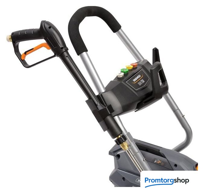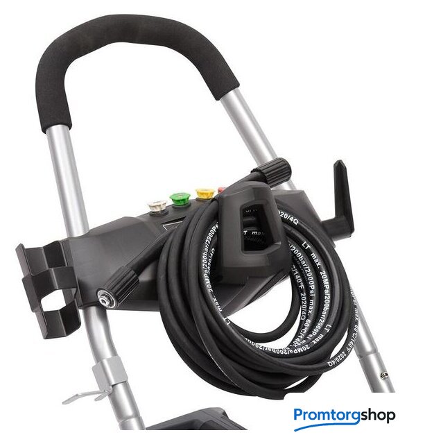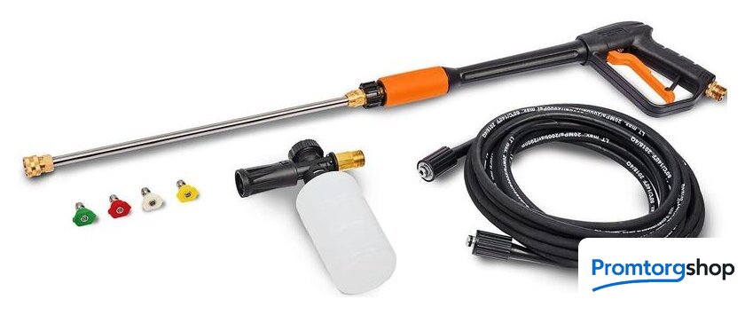 Комплектация | • Мойка высокого давления;• Пистолет;• Шланг высокого давления;• Насадка на пистолет распылительная;• Четыре быстросъемные насадки на сопло;• Дополнительный фильтр тонкой очистки;• Быстросъемный коннектор;• Пеногенератор;• Игла для прочистки сопла;• Руководство пользователя;• Гарантийный талон. |