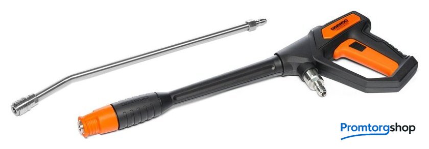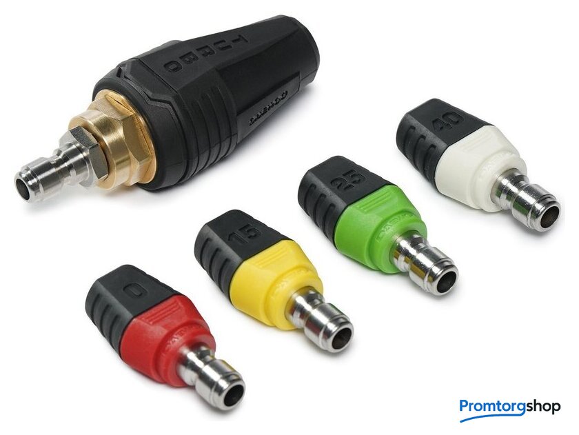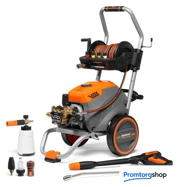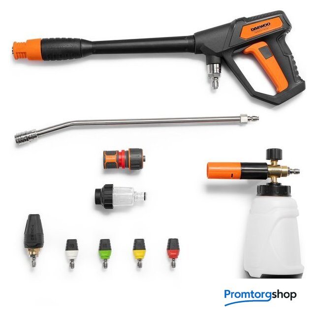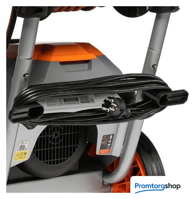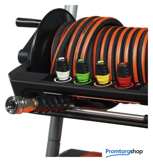 | Комплектация | Высоконапорная мойка, Армированный шланг высокого давления, Пистолет с металлическим соплом, Катушка для шланга, Быстросъемные форсунки 0°/15°/25°/40°, Грязевая фреза, Пеногенератор с латунной смесительной камерой, Фильтр тонкой очистки воды, Тележка с большими колесами |