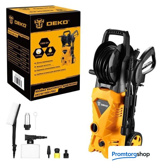 | Комплектация | - Мойка - 1 шт.- Ручка - 1 шт.- Катушка для шланга - 1 шт.- Ручка катушки - 1 шт.- Боковые держатели катушки - 2 шт.- Держатель шнура питания - 1 шт.- Держатель емкости для моющего средства - 1 шт.- Держатель пистолета - 2 шт.- Высоконапорный пистолет - 1 шт.- Распылительная трубка - 1 шт.- Шланг высокого давления - 1 шт.- Емкость для моющего средства - 1 шт.- Фильтр - 1 шт.- Насадка-распылитель - 1 шт.- Насадка-распылитель (грязевая) - 1 шт.- Насадка-щетка - 1 шт .- Коннектор для подачи воды - 1 шт.- Быстроразъемное соединение - 1 шт .- Игла для прочистки распыляющего наконечника - 1 шт.- Крепежный комплект - 1 шт.- Руководство по эксплуатации- Коробка |