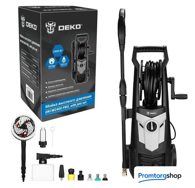Комплектация | - Мойка - 1 шт- Ручка - 1 шт- Катушка для шланга (состоит из 2-х частей) - 1 шт- Ручка катушки - 1 шт- Боковые держатели катушки - 2 шт- Держатель шнура питания - 1 шт- Держатель емкости для моющего средства - 1 шт- Держатель пистолета - 2 шт- Высоконапорный пистолет - 1 шт- Распылительная трубка - 1 шт- Шланг высокого давления - 1 шт- Пеногенератор - 1 шт- Фильтр - 1 шт- Насадка-распылитель - 1 шт- Грязевая фреза- Насадка-щетка - 1 шт- Форсунки - 3 шт- Коннектор для подачи воды - 1 шт- Быстроразъемное соединение - 1 шт- Игла для прочистки распыляющего наконечника - 1 шт- Крепежный комплект - 1 шт- Руководство по эксплуатации - 1 шт |