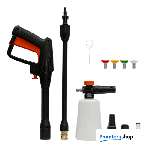 | Комплектация | • мойка • шланг высокого давления • пистолет • трубка струйная с быстросьемным коннектором • 4 быстросьемных сопла • турбо насадка • пеногенератор с регулировкой • быстросьем для шланга • входной фильтр • игла для прочистки • руководство по эксплуатации • гарантийный талон |