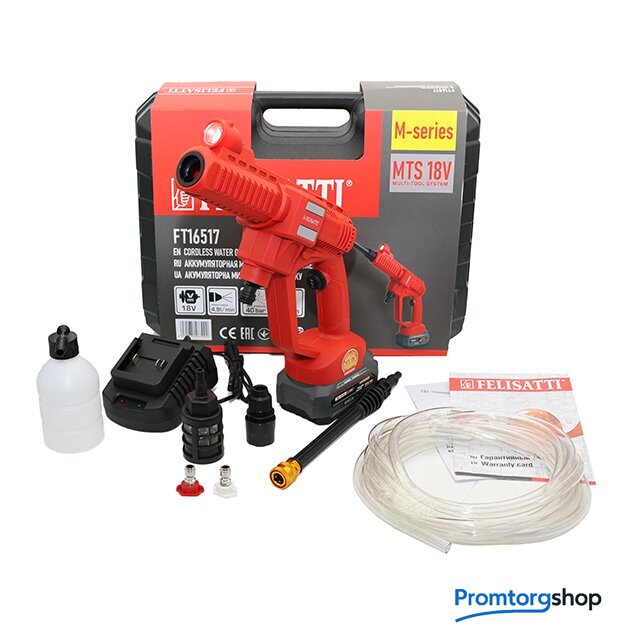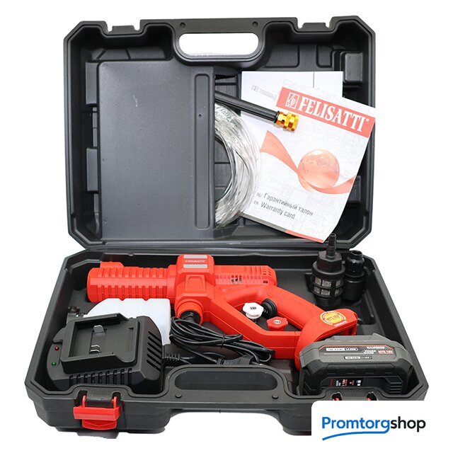 Комплектация | Мини-мойка; аккумулятор, зарядное устройство, инструкция, гарантийный талон, упаковка |