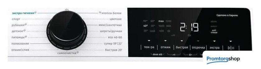 | Все программы | eco 40-60, белый хлопок, быстрая, гигиеническая, детские вещи, отжим+слив, питомцы, полоскание, рубашки, самоочистка, синтетика, спорт, супер, цветное, шерсть/ручная |