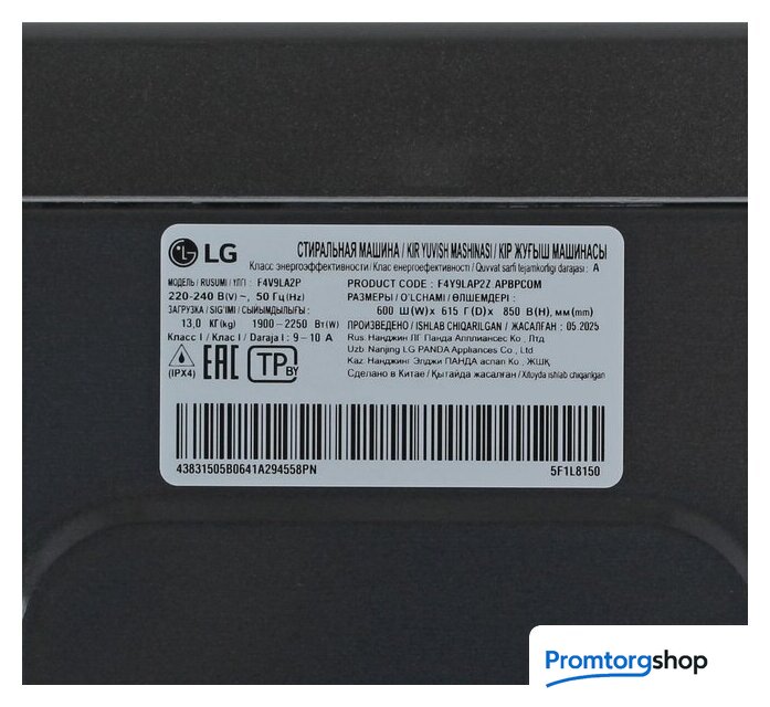 Изготовитель: ЛГ Электроникс Инк., 222 Джи-Ро, Джинви-мён, Пхёнтхэк-си, Кёнгидо, 17709, Корея / LG Electronics ink., 222 LG-ro, Jinwi-myeon, Pyeongtaek-si, Gyeonggi-do, 17709, Korea; ООО ЛГ Электроникс РУС 143160, Российская Федерация, Московская область, Рузский городской округ, территория Минское шоссе, километр 86-й, дом № 9 Страна производства: Китай