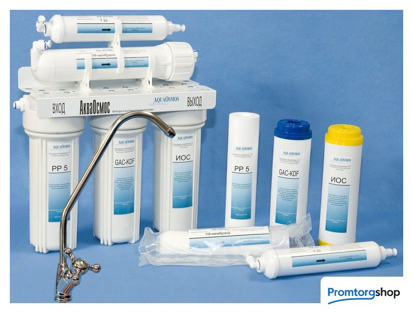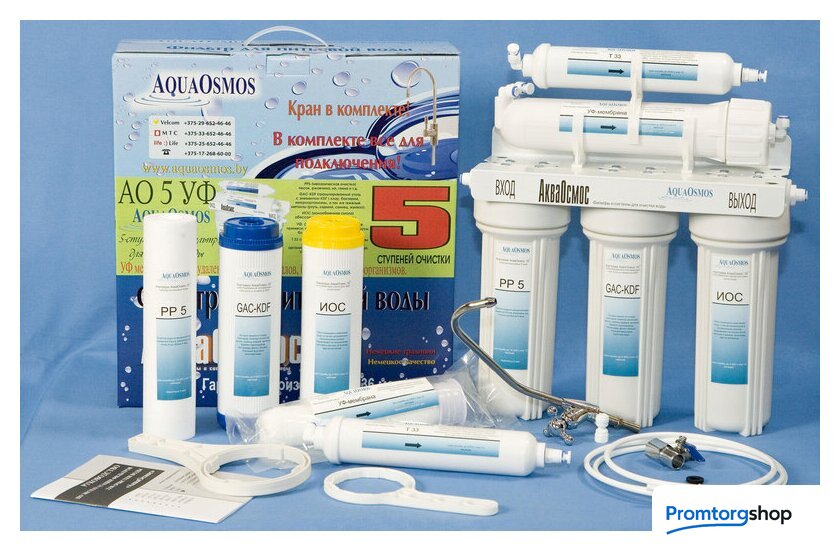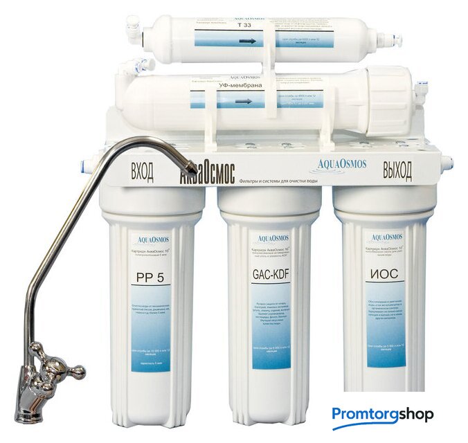 | Описание фильтра | Фильтр для очистки воды АО 5 УФ обеспечивает защиту от сверхжесткой воды, нейтрализует тяжелые металлы, на 100% удаляет вирусы и бактерии. Входит в линейку премиум фильтров компании "АкваОсмос". Является флагманом проточных фильтров нашей компании. По качеству очищенной воды практически не уступает системам обратного осмоса АО RO 5 и АО RO 6. Благодаря пятиступенчатой системе фильтрации фильтр убирает механические частицы (песок, ржавчина, ил, глина и т. д.), хлор, пестициды, органические и неорганические соединения, вирусы и бактерии. Удаляет неприятные запахи, посторонние привкусы, улучшает вкус и качество воды. С помощью картриджа ИОС (ионообменная смола) фильтр задерживает соли жесткости, устраняет накипь, обессоливает и умягчает воду. Картридж GAC-KDF справляется с тяжелыми металлами (ртуть, кадмий, свинец, железо). А УФ мембрана на 100% защищает воду от нерастворимых примесей, органических и неорганических соединений, вирусов и бактерий. В комплектацию входят сам фильтр, комплект картриджей, кран для чистой воды и полный набор для легкого подключения фильтра собственными силами. |