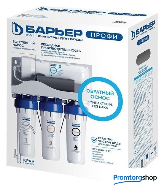 Тип фильтра(ов) | механический, обратный осмос (мембранный), ионообменный (умягчение), угольный (сорбционный) |