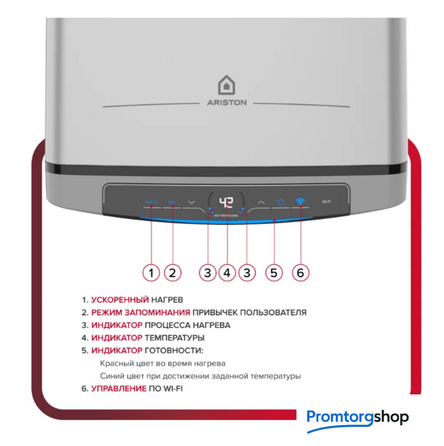 | Дисплей | есть. Управление электронное. Wi-Fi. Индикация нагрева. Самодиагностика |