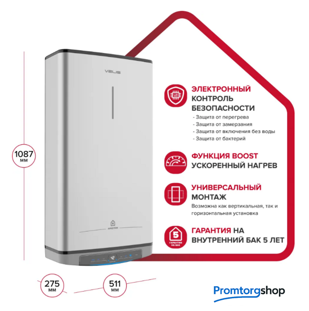 | Тип | накопительный. Особенности : Электронное управление. Встроенный Wi-Fi модуль. Cухой нагревательный элемент. Функция Boost - еще больше горячей воды, благодаря попеременной работе двух ТЭНов 1,5 кВт/1,5 кВт и увеличению максимальной температуры до 80 °С. Передовая конструкция для быстрого нагрева и экономии электроэнергии. Точная настройка и отображение температуры. Глубина 27 см экономит пространство. Возможность горизонтального и вертикального монтажа. +16% горячей воды за то же время благодаря технологии WaterPlus. Cистема автодиагностики. Идеальное соотношение дизайна и производительности. Экономия электроэнергии до 14%. Эмалевое покрытие TitanShield защищает внутренний бак от коррозии. Трехступенчатая электронная система защиты. Защита от перегрева. Сверхпрочный бак - тестирование при 16 атм. Увеличенный магниевый анод для дополнительной защиты. Профессиональная система защиты от бактерий. Предохранительный клапан в комплекте. |