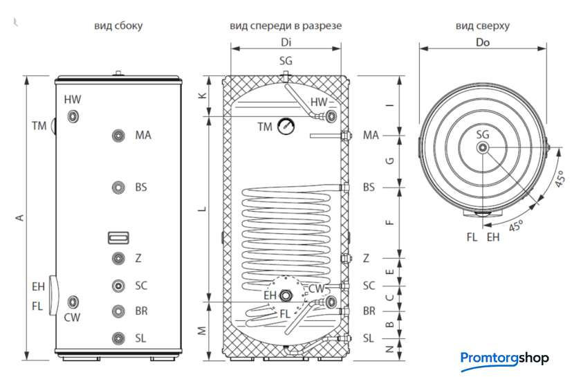 | Давление | Максимальное давление бака 6 бар, теплообменника 10 бар. |
