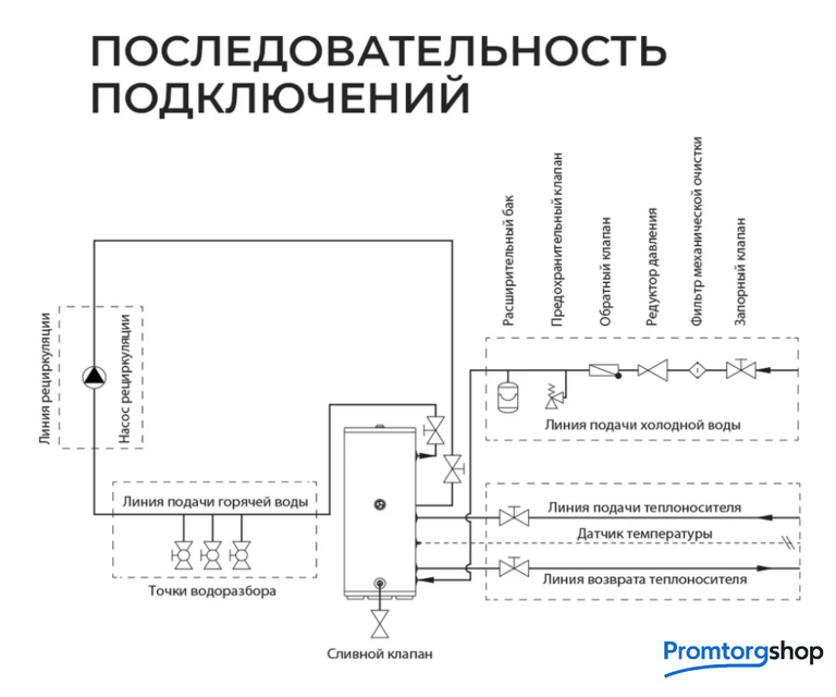 | Способ нагрева | косвенный. Резьба для подключения воды 1 дюйм. Подводка боковая |