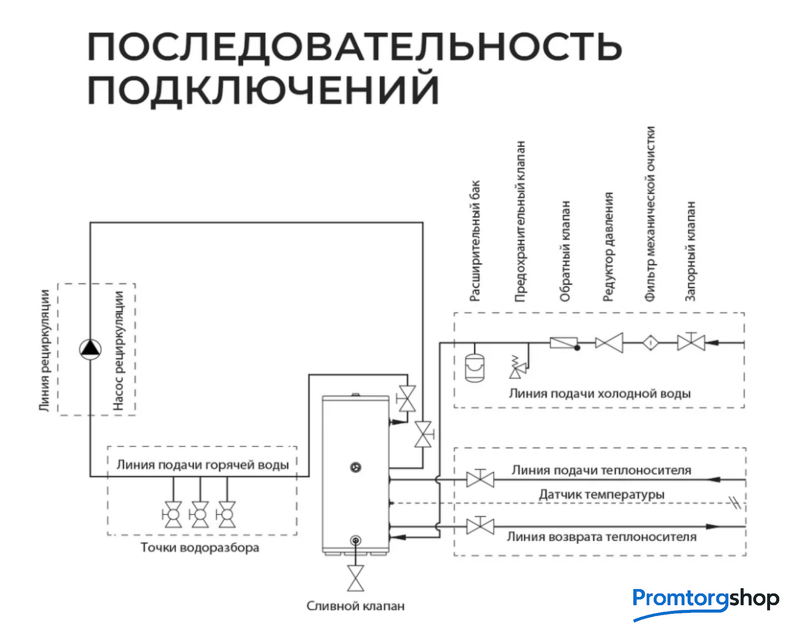 | Способ нагрева | косвенный. Резьба для подключения воды 1 дюйм. Подводка боковая |