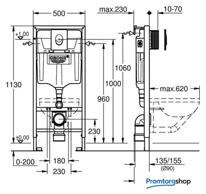 | Отверстия под инсталляцию | 180 мм, 210 мм, 230 мм |