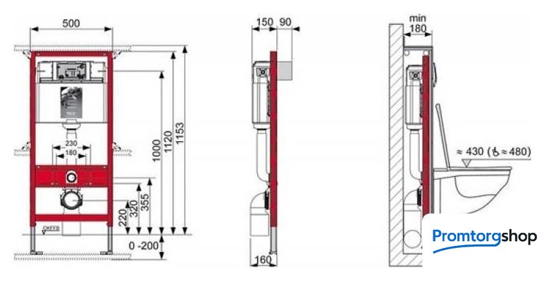 | Отверстия под инсталляцию | 180 мм, 210 мм, 230 мм |